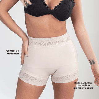 Faja Short de Compresión con Cintura Alta y Encaje - Levanta Glúteos y Control de Abdomen